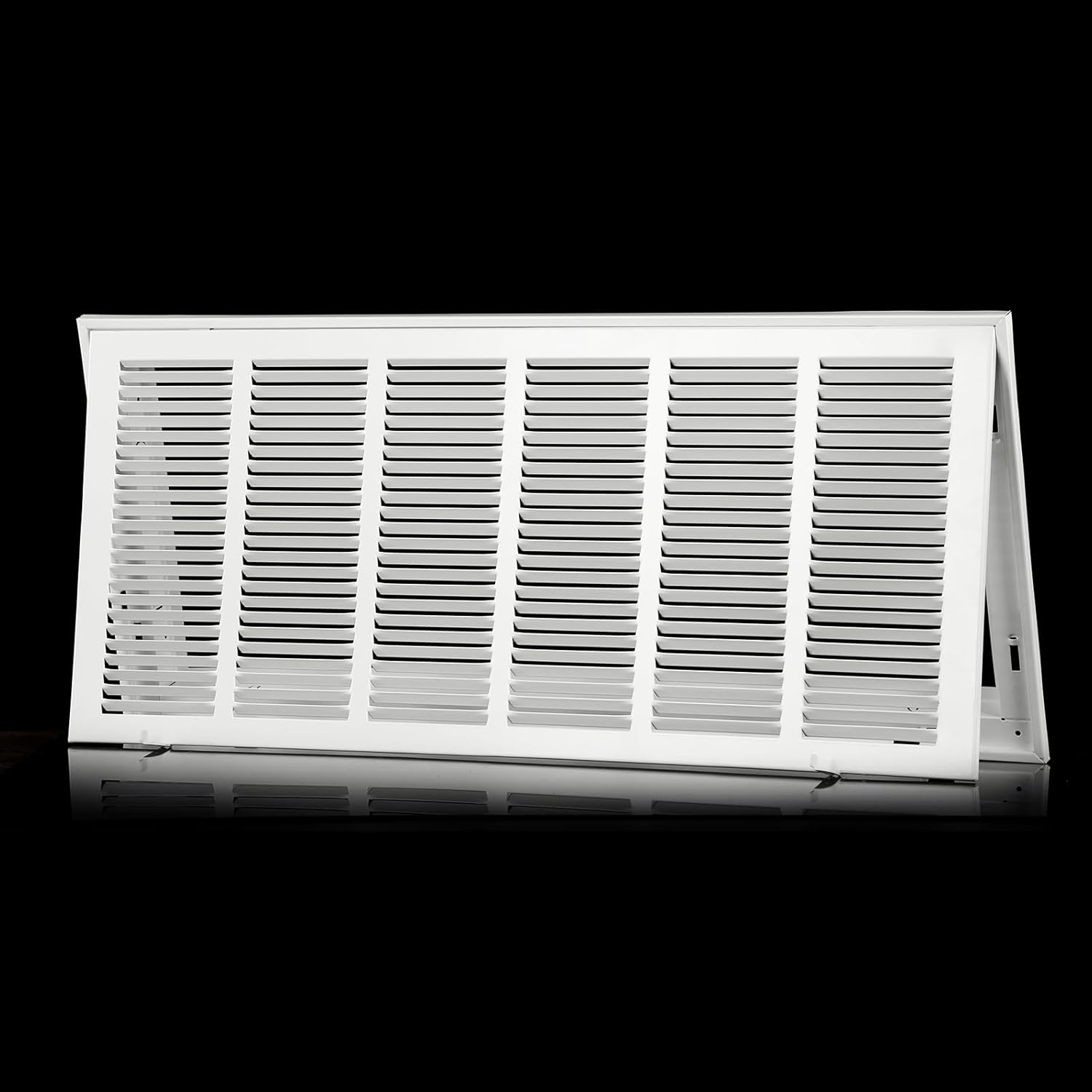 Return Air Grill,14x24 Return Air Grille [Duct Opening Size] Steel Return Vent Cover, [Removable Door] for 1-inch Filters,Return Air Grille for Sidewall and Ceiling Features: ①Return Air Filter Grille - Crafted from high quality steel with sturdy powder paint coated, this cold air return grill ensures robustness and long-lasting performance. Advanced technology and strict quality control ensure that the products have premium quality and longer service life. ②How To Measure - Always measure the wall opening to determine which size you should order. Wall Opening Size = Listed Size.14"Width x24"Height is the listed size for the hole in the wall only (Duct opening size), Actual front and outer dimensions are 15.75" Width x 25.75" Height. Be sure to measure the wall hole (space) before ordering. if wall hole size (Duct opening size) : 14 "x24", please order. ③ Return Air Grille - Enhance the aesthetic of your living space with our steel air return grill, adding a touch of modern elegance to any room. This return air filter grille offers a sturdy and reliable solution for enhancing the air circulation in your home or office. The door/face is removable for easy filter change and cleaning. Specification: -Material: Heavy Duty All-steel construction. Sturdy white powder coated. -1/2" spaced fins set at 40 degrees. Effectively conceals filter. -Use standard 1" thick disposable filters (Filter Not Included) -Fixed Hinged door. Safer and better for ceiling applications. -Equipped with adjustable filter retainers. -Primary use: Side wall and ceiling. -Screws are included with the system, standard. -Concealed mounting holes. Package includes: 1 * 14x24 Return Air Grille How To Measure A Grille? 1. Measure the air duct/drywall opening, not the register's overall size. 2. DO NOT MEASURE the overall size of the register itself 3. Only MEASURE the "HOLE" in the wall/duct. Every grille has a front end frame, that will overlap at wall joint. · Width vs Height Example: If your hole is 14" wide by 24" tall, order a 14"x24". If your hole is 14" wide by 30" tall, order a 14"x30". Note: 1. Please allow 0-1cm error due to manual measurement. Please make sure you do not mind before you bid.