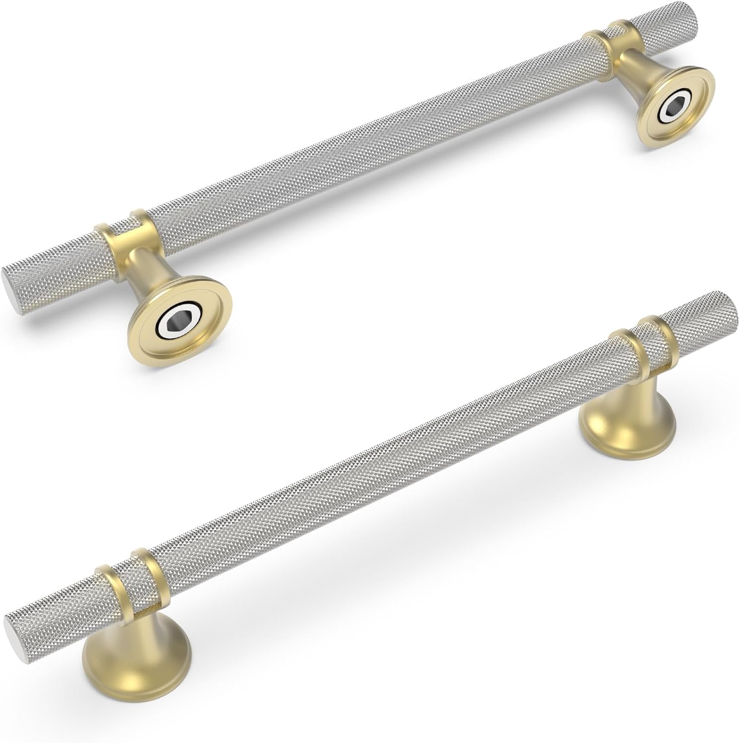 KOMOTIA 20 Pack Cabinet knurled Knobs Matte Black and Polished Chrome Kitchen Cabinet Knobs Aluminum And Zinc Alloy Drawer Pulls Solid Cabinet Hardware