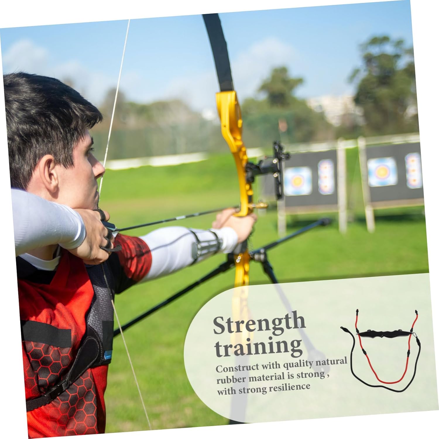 Package List 1 bar 2 x drawstrings 2 x screws 2 x gaskets Features -Size: 45.00X5.00X3.00cm/17.68X1.97X1.18in Strength Training for Reflex Weight range: about 10-40 pounds Finger Strength Resistance -Color: Assorted Color Draw Training Aid -Material: wood, rubber, stainless steel Trainer - Adopt rubber material for durableuse Exerciser Training Device. - Ergonomic design, more comfortable to grip Exerciser - Increase muscle and the arm strength, agreat tool to train pulling Strength Training for . - A great trainer for your lover friend and family Puller Stretch Band. - 10lb-40lb draw weight adjustable, idealfor your posture training and strength exercising Trainer Equipment.Goods DescriptionStrength Training for This item is an exerciser trainingdevice.Strength Training for combination adjustableto meet your different needs. Draw Training Aid Portable and detachable grip design, you can carry this trainereverywhere, start your training anytime, anywhere