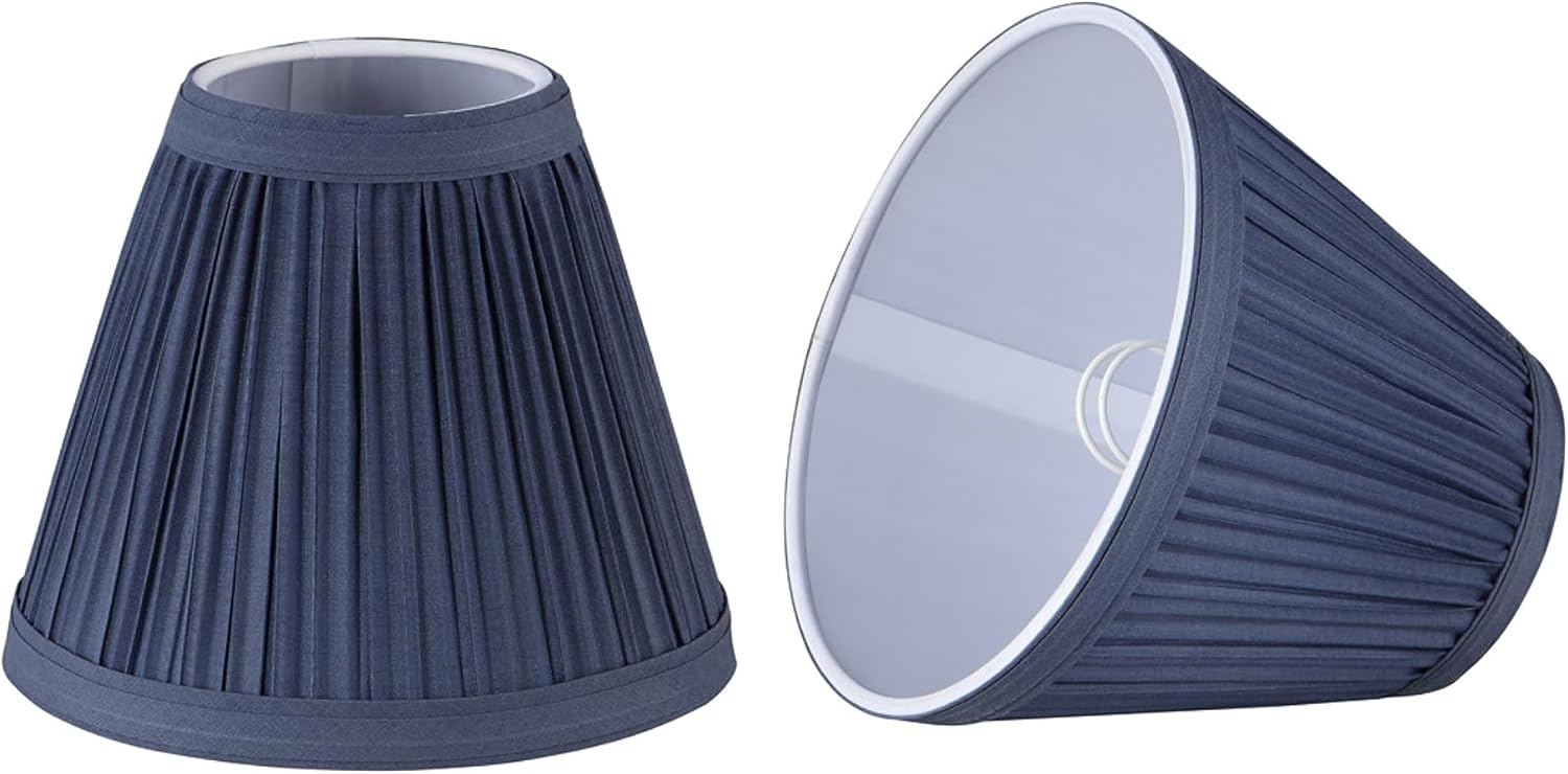 Aspen Creative Item #33123-6 Aspen Creative offers a 6-pack empire shaped clip-on lamp shade in hunter green that will enhance any space. Shade Dimensions: 3" Top x 6" Bottom x 5" Height The shade is made with a clip-on styled fitter that is most compatible with torpedo chandelier light bulbs but can also be used with other bulbs that are similar in size. We recommend that any light bulbs that is used with this product be a candelabra base (E12) or medium base (E26) and 40 wattage maximum, we do not recommend the use of bent tip light bulbs or standard sized light bulbs. Crafted with precision and attention to detail, our lamp shades are made with high-quality materials that are built to last. They are made to withstand daily use while still maintaining their shape and beauty. This product is suitable for a wide range of lighting options including small table lamps, accent lamps, candle stick lamps, chandeliers, and wall sconces, and bedroom night light lamps.
