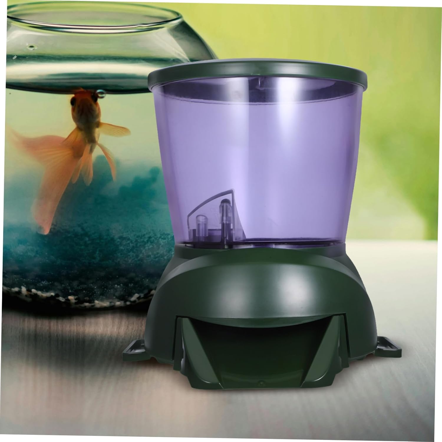 Package Include 1 Feeder Characteristics -Product Info:Automatic fish feeder - Material: ABS Fish Feeder. Color: Tank Accessories. - Size: 26.00X21.00X21.00cm/10.22X8.25X8.25in Timing Feeder - It can be fed for up to 99 days, using 4pcs no. 2 alkaline dry batteries, which can be fixed at the of the pond Pond Feeder. - Professional breeders are feeding their fish small quantities several times per day Aquarium Feeder. - Suitable for small ponds of fish timing and quantitative automatic feeding, grain dry fish food Automatic Feeder. - With this automatic fish feeder you can improves fish health, colour and growth automaticly. - Designed for pellet food only, not suitable for sticks or flake food. Food container has large capacity.Goods DescriptionAquarium Feeder This automatic fish feeder are battery powered.Timing Feeder You can place this feeder on the of the pond or quarantine tank and the unique brush dispenser will spread the food over the pond.Pond Feeder Safe to use and can be installed anywhere