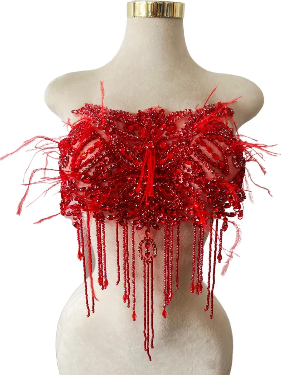 Handcrafted beaded appliqué for adding elegant embellishments to clothing, accessories, and home decor