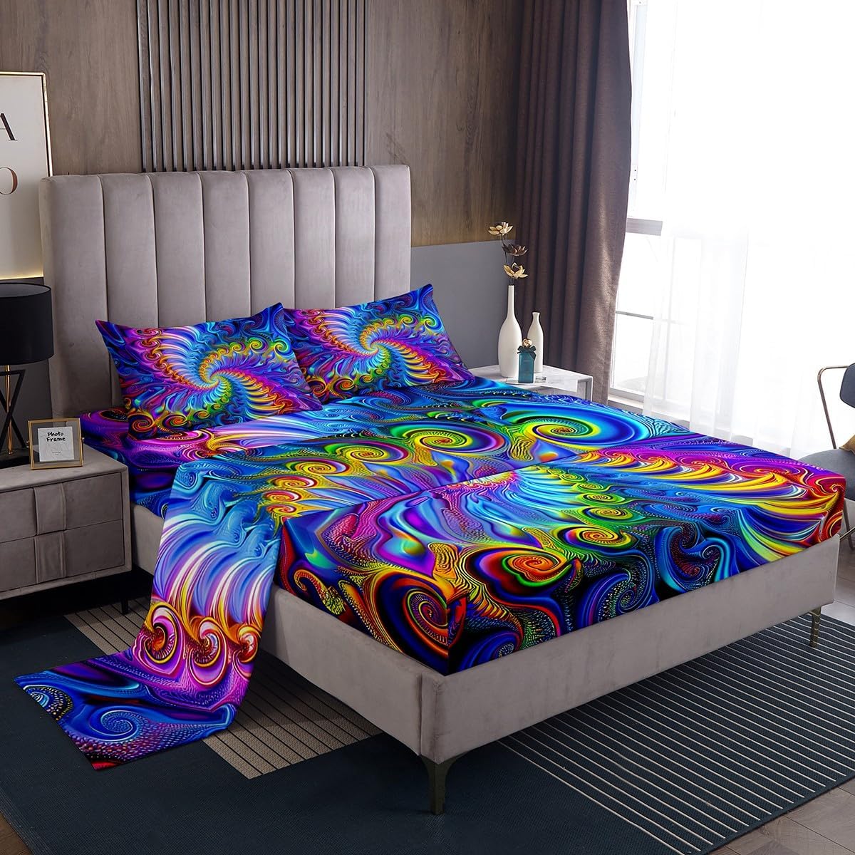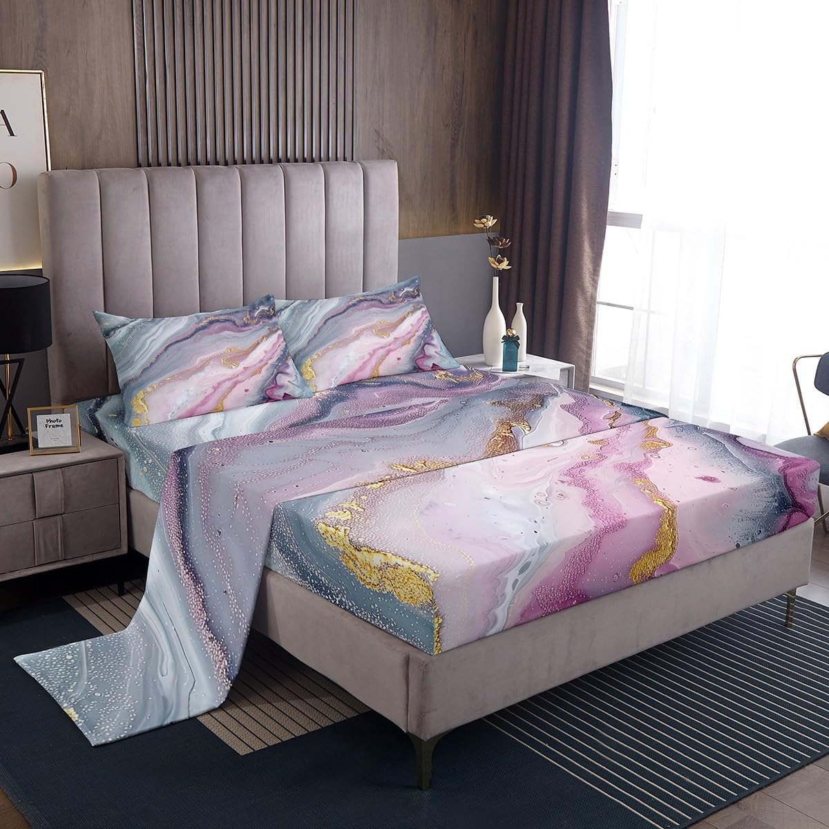 We Have Been Listening to The Opinions of Our Customers From The Reviews,So We Developed a New Bed Sheet Set and Added Flat top Sheets to Meet The Needs of More People.Our Bedroom Decor Bed Sheets Set Look with The Vivid Stylish and Elegant Print Bedding Set. Size Information Twin Size Includes: 1 Pillowcase(20”x30”) and 1 Fitted Sheet(39”x75”x16") and 1 Flat Sheet 96x66" Full Size Includes: 2 Pillowcases(20”x30”) and 1 Fitted Sheet(54”x75”x16") and 1 Flat Sheet 96x81" Queen Size Includes: 2 Pillowcases(20”x30”) and 1 Fitted Sheet(60”x80”x16") and 1 Flat Sheet 102x90" King Size Includes: 2 Pillowcases(20”x35”) and 1 Fitted Sheet(78”x80”x16") and 1 Flat Sheet 106x90" Materials: Luxuriously Brushed Microfiber Fabric Fabric and Design: Silky Soft Brushed Microfiber Cotton Feel Material Bed Set Bedding Set Fashion forward Inspired 3D Print Patterned Technique Flat Fitted Sheet Top Sheet Features: Luxuriously Soft Feel for a Great Night Sleep with Less tossing and Turning Just The Right Fill to Keep You Warm In The Winter and Comfortable In The Summer Built to Last with Premium Fabrics and Expert Stitching Care Instructions Dry Clean Preferred.Machine Washable,Use Front Loader Machine(Or top Loader without Agitator)to Avoid Tearing,Use Cold Water on Gentle Cycle,Tumble Dry Low.