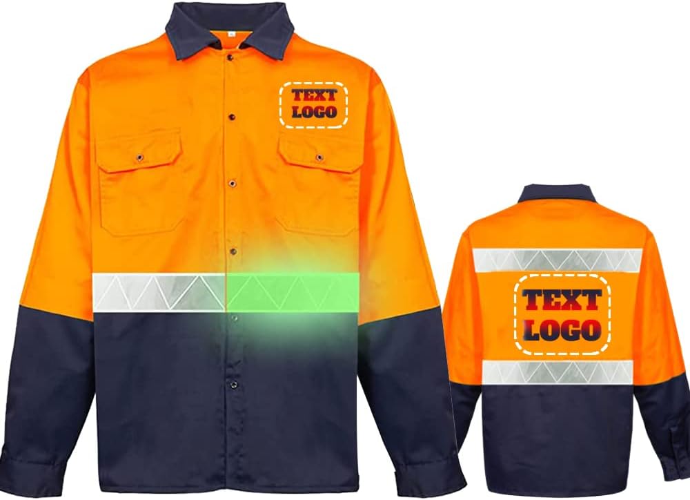 High Visibility Reflective Safety Work Shirts Custom Logo Text Long Sleeve Industrial Men Shirt