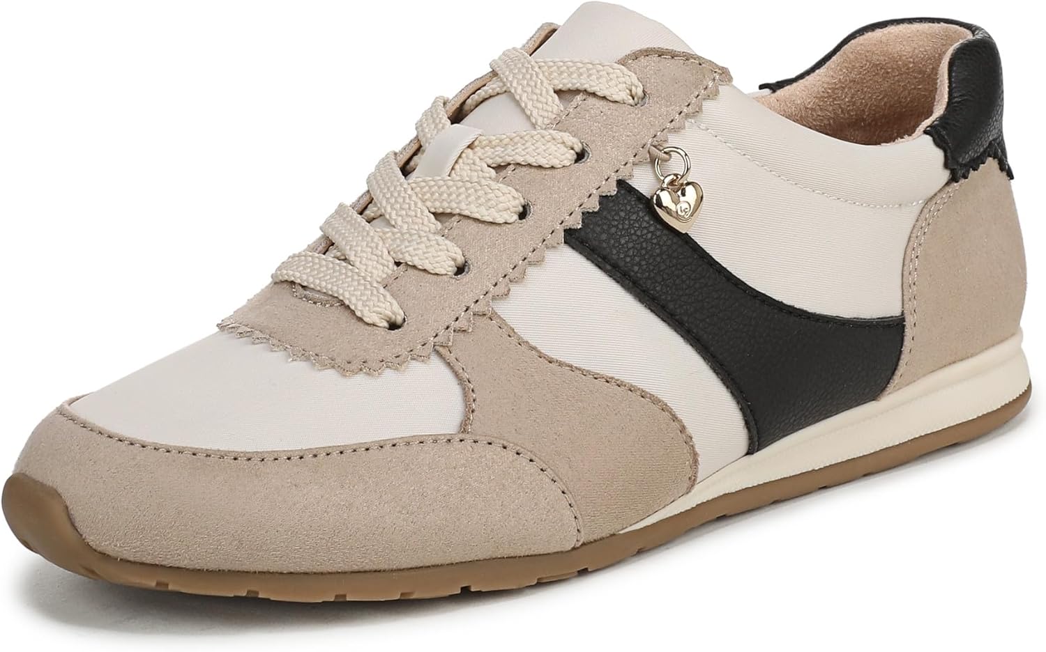 UNMATCHED COMFORT: All-day cushion, support, and flexibility with trusted Soft System comfort technology, making these lace up sneakers the ideal women's walking shoes. TRACTION SOLE: Light TPR outsole with 3/4 inch sole offers reliable grip, making these shoes a smart choice for walking sneakers and casual shoes alike. MODERN, CASUAL STYLE: Chic mixed-media upper features a microsuede and faux leather material mix, a decorative side stripe, small metallic charm, and a versatile low-top sneaker design to elevate any casual outfit. COMFORT-FIRST DESIGN: Enjoy a rounded toe design, padded collar for comfort, and a breathable fabric lining for women's casual sneakers that fit perfectly from the first step. EASY LACE-UP FIT: Secure lace-up closure with stylish beige laces and a round toe silhouette ensures these women's casual shoes will keep up with your active lifestyle, whether for everyday errands or exploring the city.