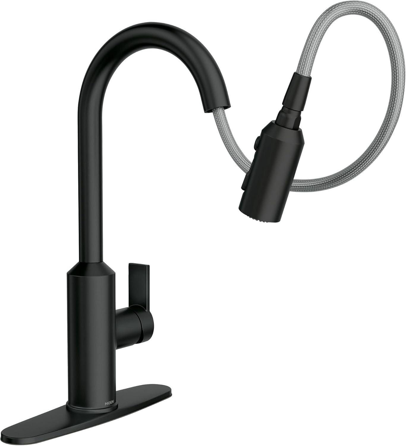 From intimate galley kitchens to large gourmet workstations, Meena faucets bring a refreshed look to your home. Simple lines create the contemporary style, while a pulldown wand delivers in-demand functionality. Featuring MOEN exclusive Power Boost technology, Meena has a 4-function pulldown spray wand with standard stream and spray, as well as boosted stream and spray modes. Matte black finish is the perfect complement to modern spaces Power Boost technology provides boosted water performance with the push of a button with - faster clean faster fill Equipped with the reflex system for smooth operation, easy movement and secure docking of the pulldown/pullout spray head Features duralock quick connect system for easy installation Faucet pulldown hose offers flexible water delivery and hose retracts with ease Aerated stream for everyday cleaning: boosted rinse: boosted stream: powerful rinse for heavy-duty cleaning Limited lifetime warranty