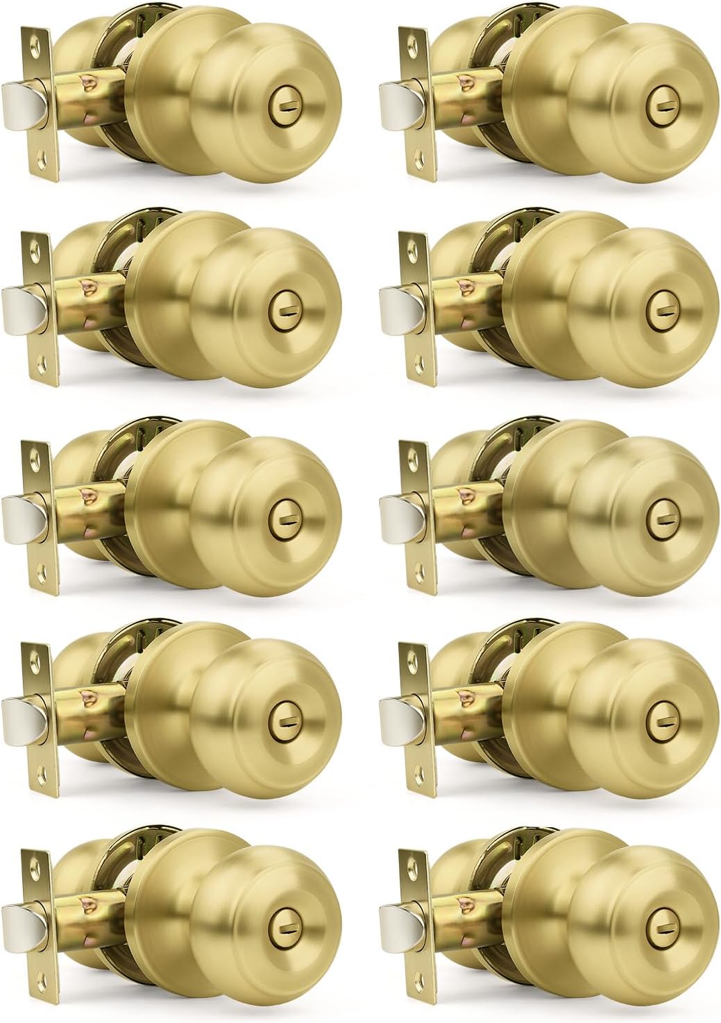 Orger 10 Pack Brushed Nickel Privacy Door Knobs Interior, Classic Round Shape Stain Nickel Bedroom Doorknobs with Lock, Keyless Modern Design Door Lockset for Bathroom and Bedroom