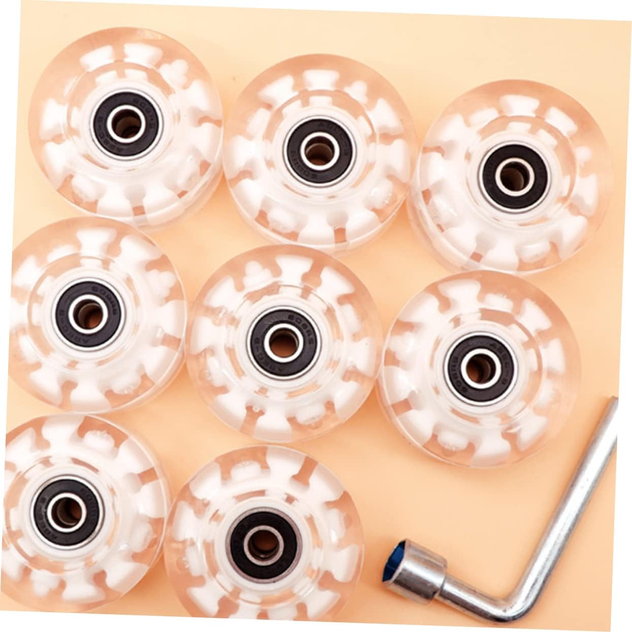 Package Include 8 1 x wrench Features - Material: PU Light Up Skating Wheels. - Size: 5.40X5.40X3.20cm/2.12X2.12X1.26inch Useful Skateboard Wheels. - Help to the comfort of your skating. It is also the great for your friends and Skate Wheels. - With design, it is fashionable and easy to use, convenient and for you Double-row Wheels. - Decorate your roller skate or skateboard with these wonderful and simple wheels Ice Skates Wheel. - With the lighting design, the will like it so much Street Skateboard Wheels. - Made from material, it is Skating Supply.Goods InformationDouble-row Wheels Work well with both flat road and ramp.Useful Skateboard Wheels With fine and wonderful detail, your skates will be sliding smoothly on the street.Ice Skates Wheels This roller skate wheel, made of material, is and use.Skateboard Wheel Suitable for beginners and professionals