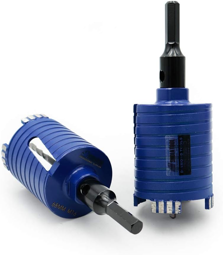 ABOUT PRODUCTION: 68mm Laser Welded Granite Core Drill Bits Dry/Wet Diamond Hole Saws for Brick Walls Specification: Diameter 68mm, M16 Thread, Drill bit total length: 100mm, Diamond Height: 10mm, Hex-Plus Adapter. Quantity: 1 Pieces 68mm Application : Dry/wet drilling for hard granite, marble, engineering stone, concrete, brick wall... Feature: 1. SDS-Plus adapter can to fit to drill or hammer drill easily 2. High quality turbo type segments provide efficient performance and long working life. 3. Centering drill help to position the core drill, it will be easy to do the drilling job. 4. Dry working, Laser welding provide great welding strength and special tube design is helpful for cooling and removing the dust from the hole When the diamond core bit start working, DO NOT use hammer model