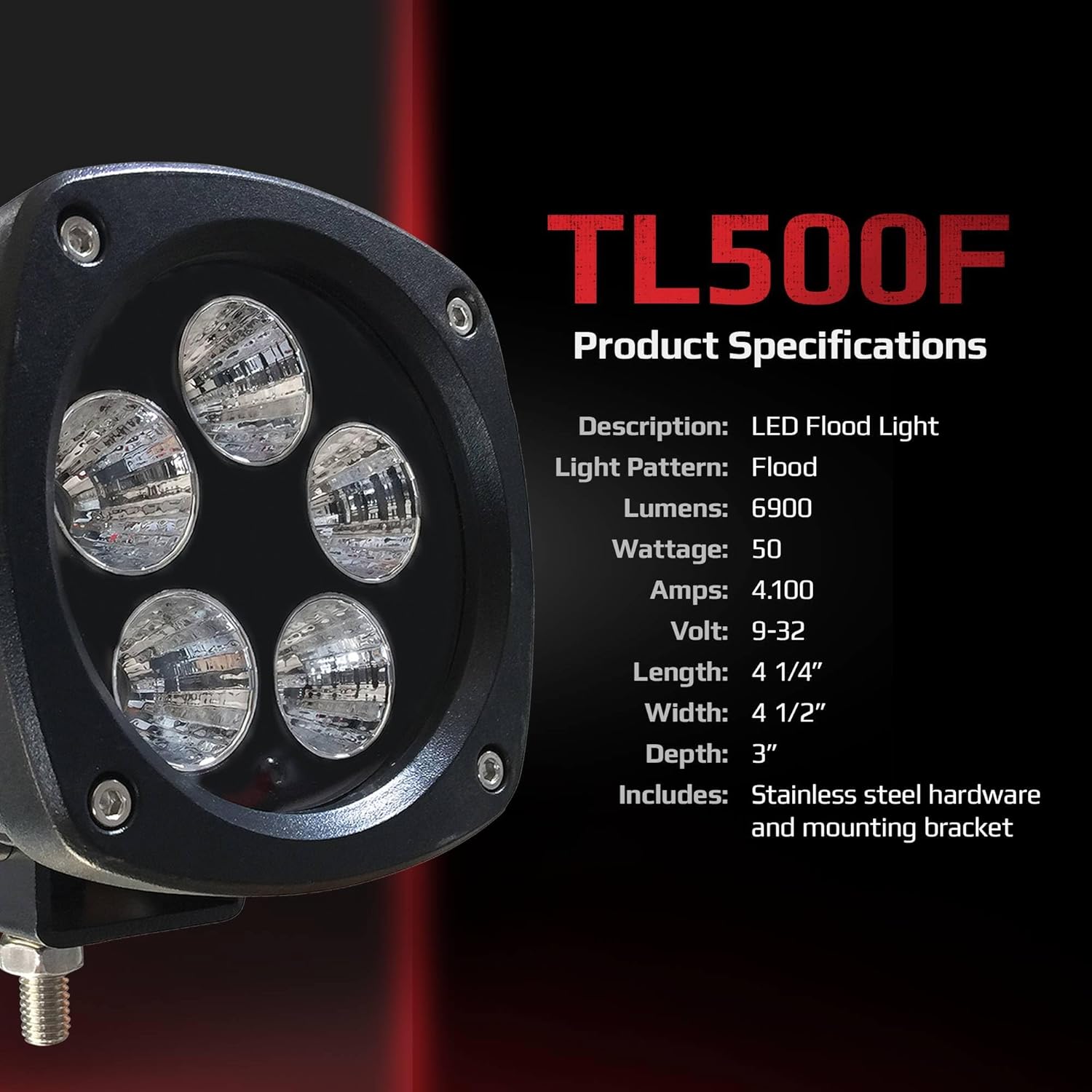 **Verify the part fits before purchasing**Specs:Description: LED Amber Warning BeaconLight Pattern: FloodLumens: 6900Wattage: 50Amps: 4.1Volt: 9-32Warranty: Limited Lifetime 60° flood patternIncludes: Stainless steel hardware and mounting bracketLength [inch][fraction]: 4 1/4Width [inch][fraction]: 4 1/2Depth [inch]: 3Replaces OEM Numbers:CaseIH: 47682620, 47682629, 84236850, 87555142, 87584890Caterpillar: 147-0319, 153-2073, 157-0305, 161-0908, 161-3509, 162-3294, 164-7600, 168-1953, 168-1960, 171-2065, 171-2066, 180-1300, 201-1422, 201-1423, 212-9347, 214-2696, 214-2968, 219-6482, 219-6485, 219-6486, 227-5978, 227-5979, 234-4323, 234-4324, 234-4325, 234-4326, 234-4327, 234-4328, 234-4329, 254-8155, 257-3168, 257-3171, 272-6641, 290-5749, 319-7377, 319-7378, 319-7379, 319-7380, 319-7381, 319-7382, 332-9402, 346-9593, 347-9427, 353-9420, 359-3426, 359-3427, 359-3429, 359-3430, 359-3445, 359-3446, 366-7803, 381-8979, 383-8634, 384-9610, 386-1717, 386-1718, 386-1722, 386-1723, 388-6274, 388-6291, 388-6292, 388-6293, 388-6294, 417-0977, 424-5603Gehl: 241117John Deere: AT135485, AT135486, AT305931, AT443223, AT443224Komatsu: 37A-06-12430, 423-06-33130Compatible With/Replacement For:Case 570N, 570NXT, 580N, 580SN, 590SN, 1150K, 1150M, 1650L, 1650M, 2050M, 650K, 650L, 750K, 750L, 750M, 850K, 850L, 850M, 1021F, 1121F, 1221E, 1221F, 521F, 621F, 721F, 821F, 921FCaterpillar 725, 730, 730EJ, 735, 735B, 735OEM, 740, 740B, 740BEJ, 740EJ, 740OEM, D250E, D250EII, D300E, D350E, D350EII, D400E, D400EII, AP-1000D, AP-1055D, AP-500E, AP-600D, AP-655C, AP-655D, AP-800D, AP1000E, AP1000F, AP1055E, AP1055F, AP300F, AP300FLRC, AP355F, AP355FLRC, AP500F, AP500FLRC, AP555E, AP555F, AP555FLRC, AP600F, AP600FLRC, AP655F, AP655FLRC, BG-2255C, BG-230D, BG-2455D, BG-260D, BG1000E, BG1055E, BG500E, BG555E, BG600D, BG655D, 415F2ST