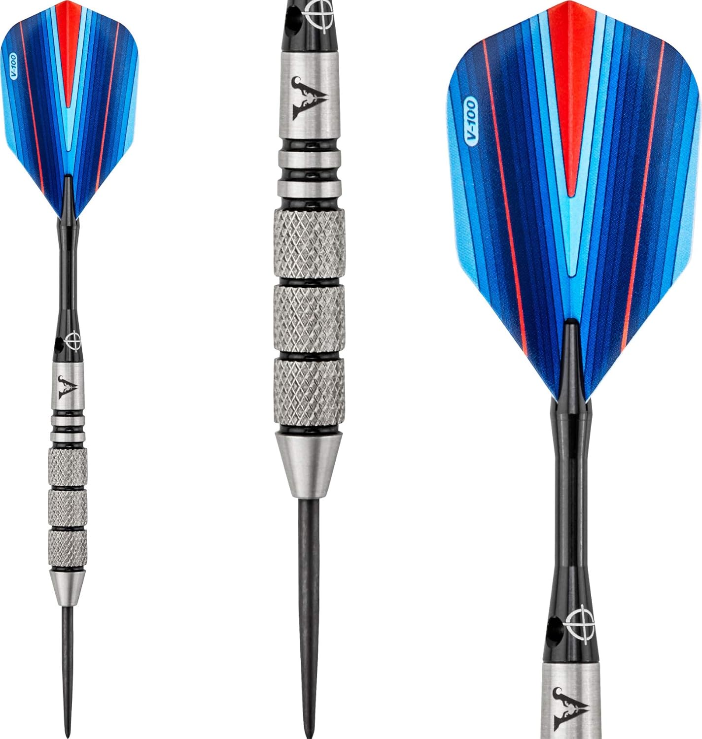 Coil up and prepare to strike with the Viper Sidewinder Steel Tip Darts designed for use with sisal dart boards. These darts are packed with features starting with the barrel, fashioned from 80% Tungsten and 20% Nickel. Tungsten is a very dense metal, able to create slimmer darts with the same weight as lighter metals; this allows for tighter shot groupings without sacrificing control, increasing your scores. Tungsten is a sign of quality and durability as well because of its density. A higher tungsten content will produce a slimmer dart profile than one with less. More tungsten in the dart increases the price as tungsten is a rare metal and its density takes more effort to machine. The increased price gives a higher quality barrel and can improve performance, increasing scores. Each barrel enjoys knurled bands, deep grooves or shark fins, allowing your grip to remain consistent throw after throw. The Sidewinder Darts feature tough, lightweight Aluminum Shafts, for maximum durability. These shafts feature locking holes that allow a more secure fit to your barrel; you won’t find yourself retightening these shafts after a shot or two. Finally, each dart is finished off with wild sidewinder graphics adorning each slim flight, for a dangerous look. Each set includes six wide glide flights, three extra nylon shafts, and dart mechanic repair tool. Barrels also feature a limited lifetime warranty!